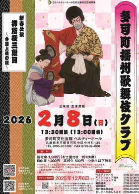 12月6日よりチケットの販売が開始しております! 今年は、120席を指定席としております。多可町播州歌舞伎クラブの限定グッズもセットになっています。 購入方法は、 ①多可町文化会館ベルディーホール等で直接購入する ②下記のURLから購入する の2つ方法がありますので、お早めにお買いいただければ幸いです! ぜひ、家族やお知り合いの方を誘っていただき、多可町が誇る伝統文化を見に来てください。たくさんの方に来ていただくことを楽しみにお待ちしております。
