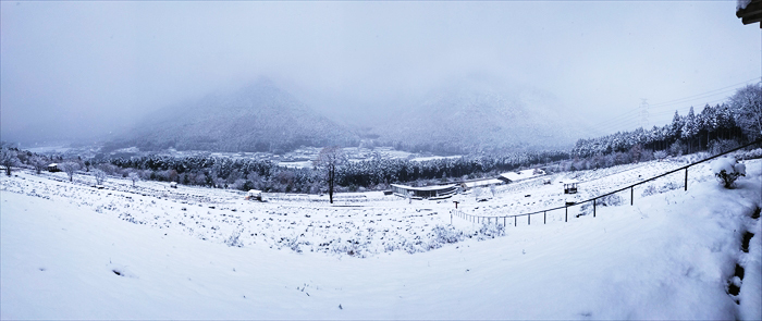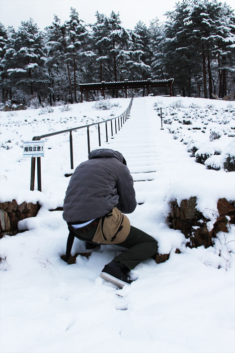 ぼくが住んでいた東京や和歌山では、なかなかお目にかかれない雪景色にほだされ、1時間程度を予定していた撮影が、気づけば正午 ―― 頭のなかにシャモジが浮かんだこともあり撤退しました。