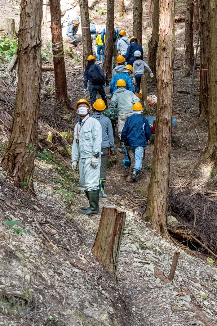 全員がヘルメットをかぶり、絶対安全の気構えで山に入ります。