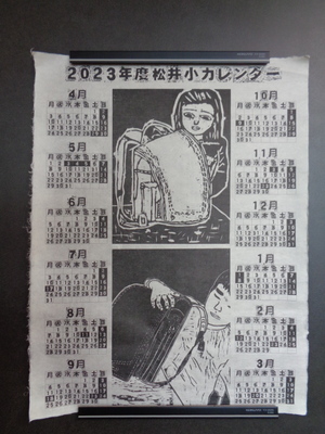 松井小学校から子どもたちの版画作品が刷られた2023年度の「松井小学校版画カレンダー」が届きました。この取組は、昭和55年から始まり昭和61年からは地域の誇る杉原紙を使うようになり,お世話になっている方々へ日頃の感謝を込めてカレンダーを届けるもので現在まで続いています。この取組を通して子どもたちは、ふるさとに誇りと愛着をもち、日頃お世話になっている方々への感謝の気持ちを伝えるものとなっています。素晴らしいカレンダーを届けていただきありがとうございました。