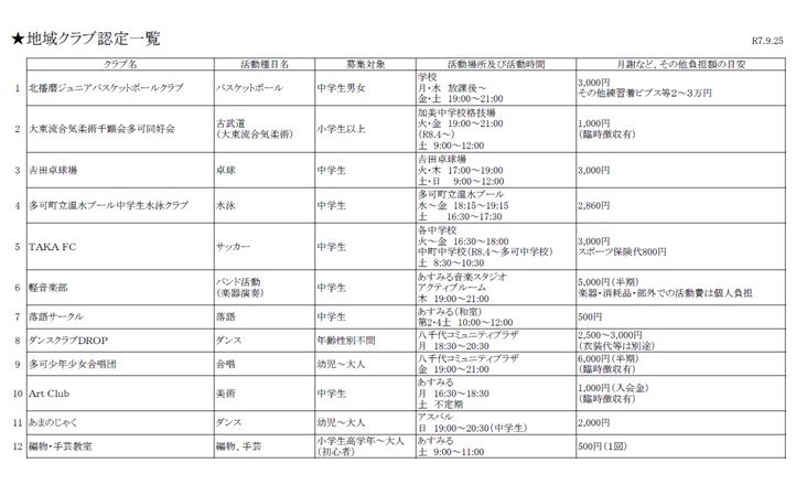 地域クラブ認定要綱に基づき2025年9月25日付けで、こちらの地域クラブが認定されました。