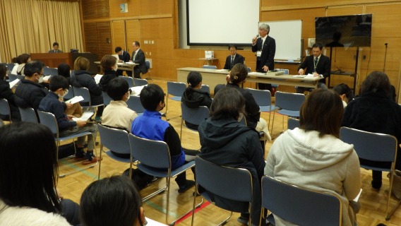 12月5日、小中学校の保護者のみなさんを対象にした説明会を開催しました。たくさんの方にご来場いただき、内容の説明に続き、これからの動きや心配ごとなど、様々なご意見をいただきました。