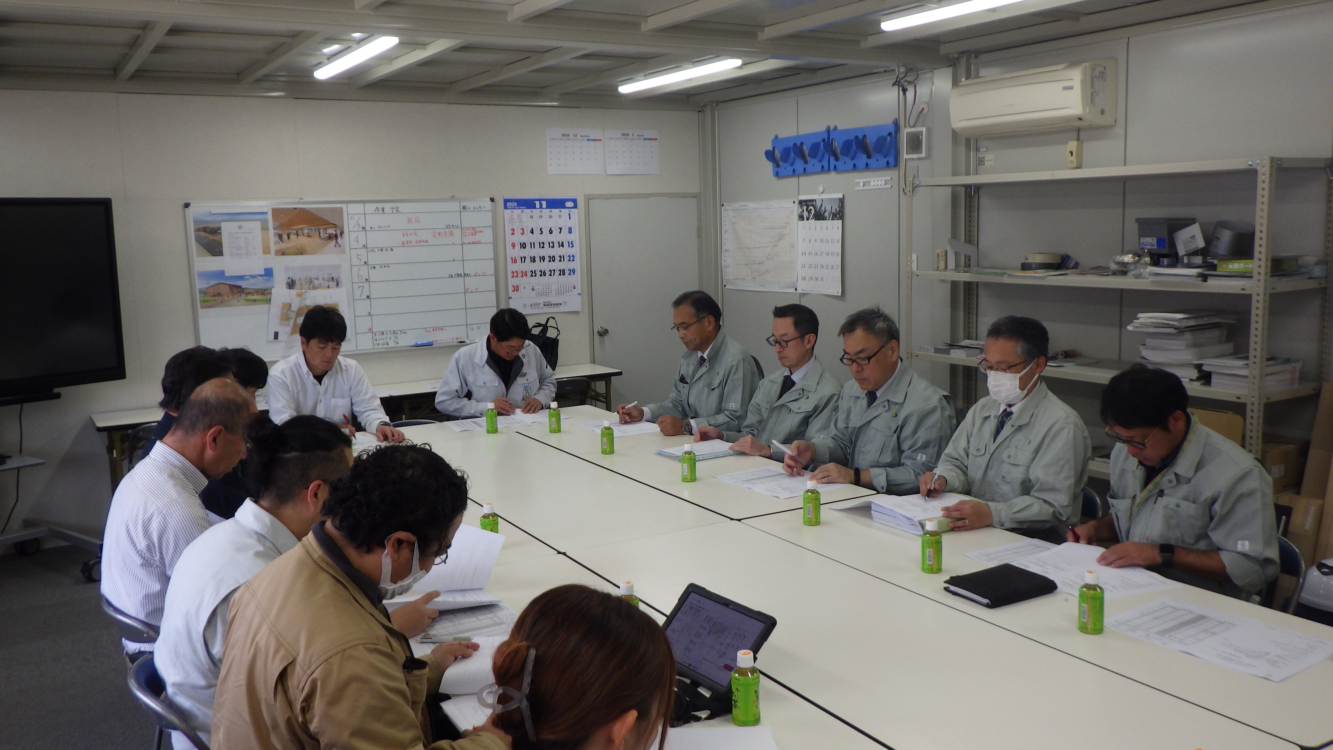 11月4日、統合中学の建設関係者が工事の進捗状況を共有し、完成に向けて連絡調整をする工程会議に参加しました。10月末現在の進捗状況は72.55%の予定のところ78.66%で予定よりも速いペースで順調に工事が進められています。工程会議の後、内部のようすを視察しましたので画像とともに紹介します。