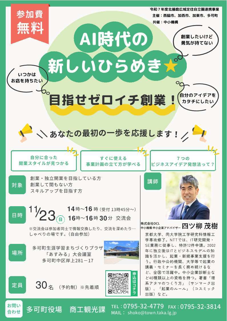 起業の成功ポイント、AIを使ってアイデアを形にするプロセスなど実践テクニックを学べます。参加者同士の交流の場もあります。セミナーの内容に興味のある方ならどなたでもご参加いただけます。あなたの最初の一歩を応援します!