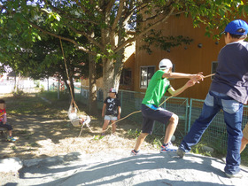 久しぶりに山に入って,ターザンごっこをしました。参加したメンバーはみんなわくわく。だって,大自然の中で汗をかけるし,澄み切った空気が吸えますから。そのとおり,たったロープ1本と木の棒だけで,群れ遊びを楽しむことができました。
