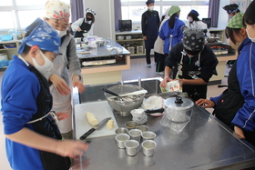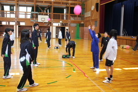 住居地交流がありました。懐かしい友達と出会い、調理実習や体育館でレクリェーションで楽しみました。