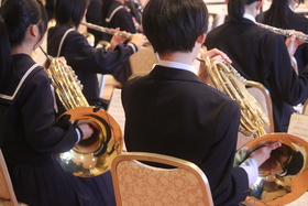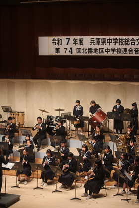やしろ国際学習塾で最後の北播地区中学校連合音楽会が開催されました。3中学校吹奏楽部が合同で出演し、合唱も披露しました。本来、室内の写真や録音は禁止されていますが、本部に記録として残された画像を使用しています。