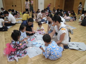 加美体育館で、異年齢の親子が集まり、運動会をしました。それぞれの年齢で、できることは違いますが、お互い応援し合ったり、成長を喜び合ったりしながら、体をいっぱい動かしました。