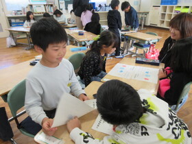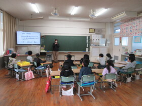1・2年生は「税のことを知っていますか」をテーマに、紙芝居を通して税の役割を学びました。道路や学校など、自分たちの身近なところで使われている税について興味をもって楽しく学ぶ機会となりました。
