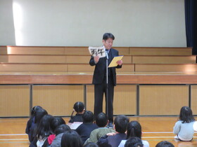 始業式では干支の話をしました。今年の干支は「丙午(ひのえうま)」です。丙(ひのえ)は、「明るい」や「活発」、「生命力にあふれる」という意味があるそうです。また、午(うま)には「スピード」や「行動力」、「勢いや力強さ」の意味があり、丙午(ひのえうま)の年は、昔から「勢いがある良い年」といわれているそうです。その勢いに乗って何事にも笑顔で取り組んで欲しいとの思いを伝えました。