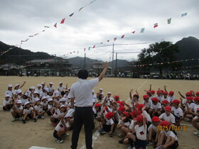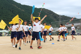 秋空のもと、令和7年度の運動会を実施しました。開会式前に、赤白それぞれ円陣を組み、6年生が「みんなで頑張ろう」とかけ声をかけていました。演技や競技はもちろん頑張っていましたが、準備や片付けに取り組む高学年の姿勢はとても立派でした。保護者の方々にもたくさん助けていただきました。ありがとうございました。