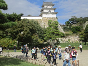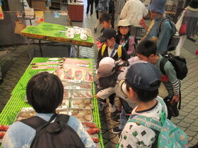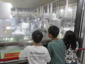 3年生が社会見学に出かけました。初めに、姫路にあるヤマサ蒲鉾の工場を訪れました。工場内でスーパーでよく目にする蒲鉾やカニカマが作られる工程を見学をした後、魚のすり身を竹に巻き付け完成させる「ちくわ作り体験」をしました。次に、バスで明石公園に移動してみんなでお弁当を食べました。昼食後に魚の棚市場を見学しました。実際にお家に買っていくお土産を選び、思い思いの買い物をしました。