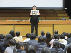 今月の朝会では、阪神淡路大震災の1.17追悼集会に先立ち、防災の話をしました。2025年の1年間に日本で発生した有感地震(ゆれを感じる地震)は何回発生したか分かりますか?なんと4456回も発生したそうです。(気象庁HPより)様々な災害に見舞われる私たちは、日頃から災害に備えることが大切であると思います。学校でも講話や訓練を通して自分たちの身を守る「防災意識」を高めていきたいと思います。