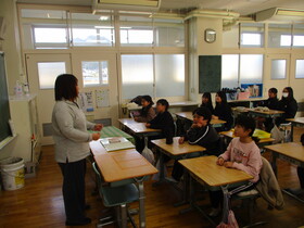 4年生が手話通訳の先生をお招きして手話の学習をしました。「ビリミリオン」という曲を手話で表現しました。言葉の意味から手話で表現することはとても難しかったようですが、曲のテンポに合わせてみんな頑張っていました。