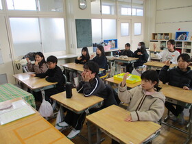 6年生が家庭科の時間にじゃがいもを使った料理に挑戦しました。料理の得意な子もそうでない子も、班で協力して取り組んでいました。