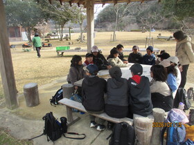 なか・やちよの森公園を訪れ「火起こし・炭焼き体験」をしました。今回は、中町北小と杉原谷小の3年生と一緒に、いくつかの班に分かれて「火起こし器」を使い活動をしました。なかなか火を起こすことができずに苦労している班もありましたが、声を掛け合い火を起こすことができた時には大きな歓声が上がっていました。休み時間に一緒に遊んだり活動をしたりして他の小学校の友だちとも仲良くなりました。