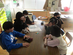 2年生が生活科の学習として、身の周りのものから遊具を作る「おもちゃランド」の学習を行ってきました。各班に分かれて、体育館で1年生を迎えて交流会を計画しました。どの班も工夫をこらし、「1年生を楽しませよう」と意欲的に取り組んでいました。