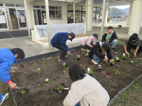 多可町産業振興課より「緑の募金活用事業」として花の苗をいただきました。3年生が学校花壇に苗植えをしてくれました。これから春に向けきれいな花が咲くのがとても楽しみです。