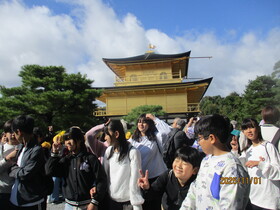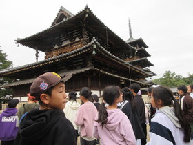 6年生が奈良・京都方面へ修学旅行に出かけました。1日目はあいにくの雨でしたが、欠席する児童もなく全員で法隆寺や東大寺、清水寺を見学しました。2日目はお天気も回復し、二条城と金閣寺を見学しました。最後に太秦映画村で班ごとに買い物やアトラクションを楽しみました。とても笑顔のあふれる修学旅行になりました。