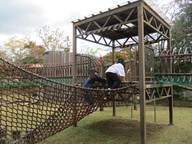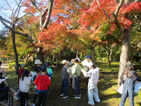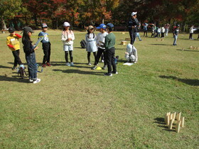 3年生が環境体験学習として余暇村公園に出かけました。今回は、八千代小学校と杉原谷小学校の3年生と交流しました。公園内では交流班に分かれ「秋探し」をしました。秋色に色づく美しい自然に触れ合う時間となりました。その後、班対抗で「モルック」や施設内の遊具を楽しみました。とても穏やかな天気の下、自然と友だちと触れ合う素敵な時間となりました。