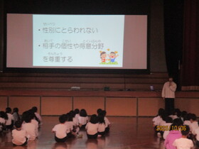 10月の人権集会を行いました。担当の先生から、性別にとらわれないことや相手の個性や得意なことを尊重することの大切さについて話をしてもらいました。子どもたちが他者に対して決して思い込みで意地悪をしたり、差別したりせず、互いの考えや気持ちを尊重することがとても大切だと思います。小学校での学習や生活を通して育んでいきたいと思います。