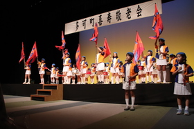 また、式典のオープニングとフィナーレには、多可町播州歌舞伎クラブと多可町合同コーラスグループの皆さんによる素晴らしい舞台があり、多可町らしさ溢れる文化の香り高い演出に大きな拍手が贈られました。本番に向け、連日練習していただきましたことに心から感謝申しあげます。