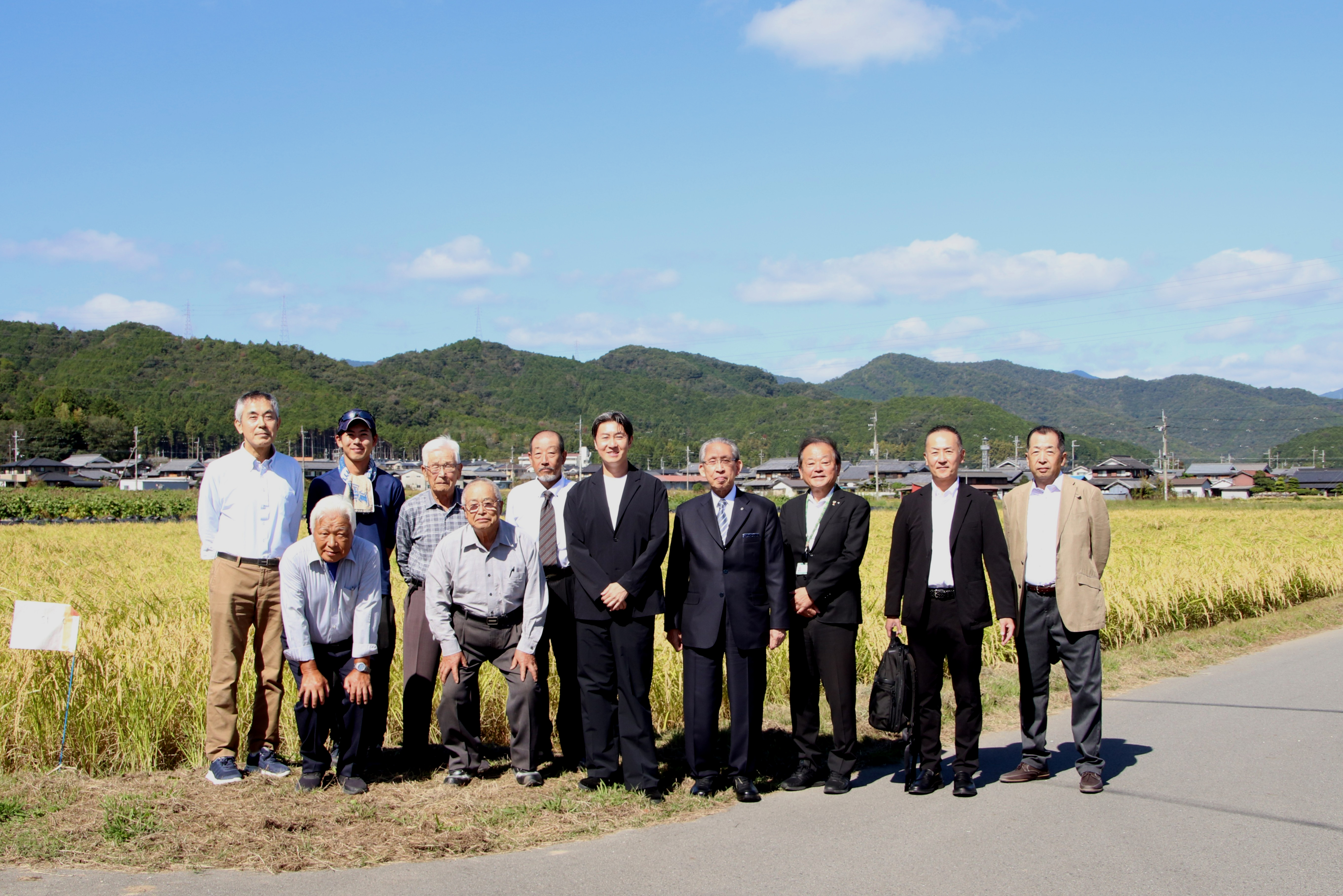 10月になると、蔵元から山田錦の出来映えを確認するために現地を訪れる「検見(けみ)」という交流事業があります。