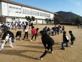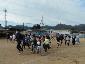 マラソン大会に向けて、かけ足訓練が始まりました。自分のめあてを決めて走っています。