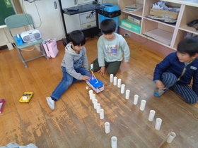 2年生がいろいろなゲームやおもちゃを作って、1年生を招待しました。それぞれのおもちゃコーナーをしっかりと運営していました。