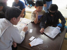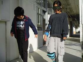 高齢者疑似体験として、高齢者の視界を体験できるゴーグルをつけて作業をしたり歩いたりしました。見えづらさを実感していました。