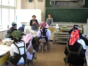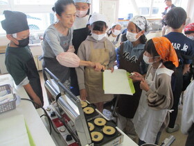 酒米山田錦の学習で、山田錦を使ったドーナッツづくりを行いました。地域と連携し、夢蔵のスタッフさんに来ていただき指導をしてもらいました。
