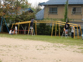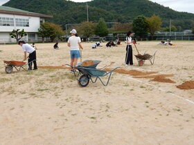 6年生親子での奉仕作業をしていただきました。校舎のクモの巣とり、運動場の草引き・土入れ、溝掃除や遊具のペンキ塗りなどそれぞれ分かれていただき整備していただきました。ありがとうございました。