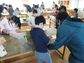 6年生の図工はパズルを製作しています。小学校の想い出の場面など、それぞれの想いのこもった絵を1枚の木板に描き、それを電動糸のこぎりで切って各パーツを作ります。デザインした線に沿って切るのも難しいようで、みんな手元に集中して慎重に作業をしていました。切り取ったパーツ一つ一つに丁寧に紙やすりをかけて仕上げていきます。