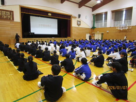 本日より、3学期がスタートしました。始業式では、校長より干支にちなんだ話がありました。2026年の干支「午(馬)年」は、前向きに進むことを大切にする年であり、馬は目標に向かって進む象徴、また願いを運び、努力する人を後押しする存在とされています。三学期は、次の学年や進路へ向かう大切な時期です。目標に向かって一歩ずつ前進する一年にしてほしい、という励ましの言葉がありました。
