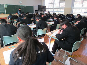 また、2校時からは実力テスト・課題テストを実施しました。冬休みの学習の成果を確認する大切なテストであり、特に3年生にとっては、入試に向けた力試しの機会となりました。