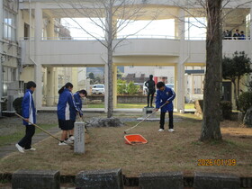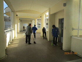 3学期が始まり、最初の清掃活動を行いました。この日は厳しい冷え込みとなりましたが、生徒たちは寒さを感じさせないほど元気に、黙々と清掃に取り組んでいました。廊下や教室、特別教室など、それぞれの担当場所で丁寧に汚れを落とし、協力し合いながら作業を進める姿が見られました。冬休みの間にたまった汚れもすっかりきれいになり、校舎は明るく、気持ちのよい学習環境となりました。清掃後には達成感に満ちた表情を浮かべる生徒も多く、3学期へのよいスタートとなりました。寒さに負けず、3学期も元気に過ごしていきましょう。