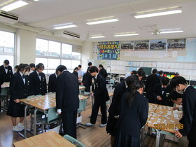 12月25日(金)の3校時に、終業式を行いました。終業式では、2学期の始業式で校長先生からお話のあった、(1)学校行事に本気で取り組むこと、(2)多忙な2学期だからこそ自分を大切にすること(①凡事徹底、②行事に流されず、計画的に学習に取り組むこと)