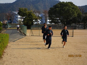 12月19日(金)に予定している校内マラソン大会に向けて、体育の授業では持久力走に取り組んでいます。長い距離を走りきる中で、強い気持ちと持久力を育てること、日頃の授業や部活動での成果を試すこと、そして友だち同士でお互いのがんばりを認め合うことを目的としています。