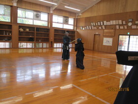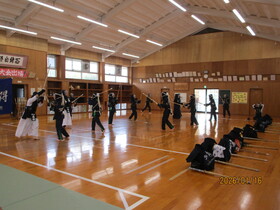 3学期に入り、体育の授業では格技の学習として剣道が始まりました。生徒たちは防具の扱いや礼法について学ぶところから取り組み、剣道ならではの「礼に始まり礼に終わる」姿勢を大切にしながら授業に臨んでいます。授業では、体育科で剣道を専門とするY先生と剣道部の部員が、基本動作や打突などの実技を模範として見せてくれます。間近で見る迫力ある動きや気迫あふれる姿に、生徒たちは剣道の魅力を強く感じている様子でした。初めて竹刀を手にする生徒も多い中、正しい構えや足さばき、基本的な打ち方を一つ一つ確認しながら、互いに声を掛け合って練習に励んでいます。今後も授業を通して、剣道の楽しさや奥深さを感じながら、心身の成長につなげていってほしいと思います。