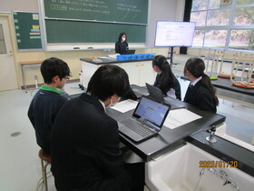 続いて行われた「1.17を忘れない」追悼集会では、犠牲になられた方々に黙とうをささげました。その後、震災・学校支援チーム(EARTH)員のT先生より、スライドを用いて「防災の必要性と自分たちにできること」と題した講話がありました。東日本大震災などの被災地での活動をふまえた内容で、生徒たちは真剣に耳を傾けていました。