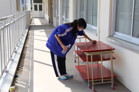 明日は卒業式です。新型コロナウイルス感染症対策で在校生の参加はありませんが、先輩への想いを込めて卒業式の準備・校内清掃を行いました。