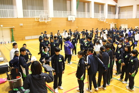 続くレクリエーションでは、加美中の風船バレー、中町中のジェスチャーゲーム、八千代中のイントロクイズが行われました。風船を必死に追いかける姿、難しいお題を全力で表現して笑い合う様子、音楽が流れると同時に一斉に手を挙げる真剣な表情——どの場面も目が離せず、班ごとに歓声と笑い声が広がり、会場は終始明るく温かな空気に包まれました。