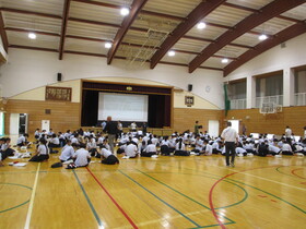 本日5・6校時、3年生が家庭科の授業の一環として、「読み聞かせの授業」を行いました。講師としてお迎えしたのは、多可町で活動されている読み聞かせグループ「あいあい」さんです。この授業は、家庭科の単元「幼児の生活と家族」「遊びを豊かにする物」の学習の一環で行われるもので、絵本の魅力を味わいながら、「読む」ことを通して心をつなぐ体験を大切にしています。教室に絵本の世界が広がったのは、授業のはじまり。「あいあい」さんによる読み聞かせの実演が始まると、生徒たちは自然と静まり、絵本の世界に引き込まれていきました。声の抑揚や間の取り方、登場人物の感情を込めた語り口に、生徒たちは身を乗り出して聴き入り、「ただ読む」以上の力が絵本にはあることを実感しているようでした。