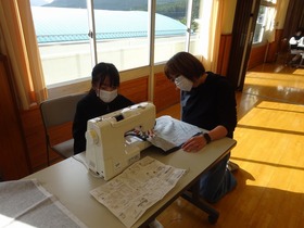 5年生家庭科でエプロンづくりをしました。杉小お助け隊を募り、ミシンボランティアの方々に来ていただきました。子どもたちの理解も進み、予想よりはやく作業が進みました。