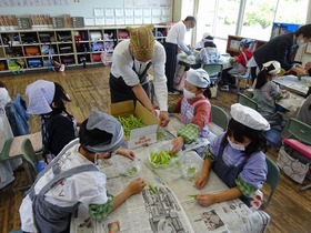 さやえんどうの皮むきを行いました。手際よく、上手に、たくさんむくことができました。明日の給食に出てくるのが楽しみです。