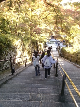 自然学校の1日目です。天気は快晴。午前中は法隆寺、空いていたので、五重塔、金堂だけでなく、夢殿も見学できました。奈良公園~東大寺ではたくさんの人でしたが、希望する子は大仏の鼻くぐりもできました。その後は、京都に入り、清水寺。ここはすごい人で、歩くだけでも大変。それでも見学の後のお買い物の時間は確保しました。そして、お宿に到着。夕食後は、友禅染を体験しています。