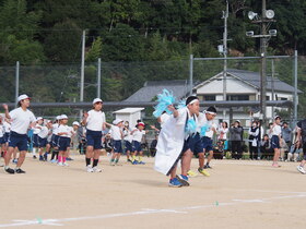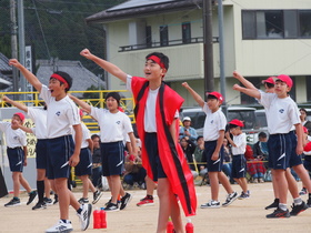 紅白対抗で競うだけでなく、チームの枠を越えた表現種目も行いました。みんなでワンチームです。