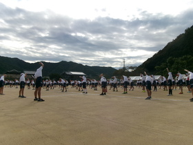 いよいよ今週土曜日は運動会です。今日は、そのための予行です。本番と同じように動きながら、よかった点と改善点を探します。子どもと職員が一体となり、ベストな運動会にしていきたいと思います。