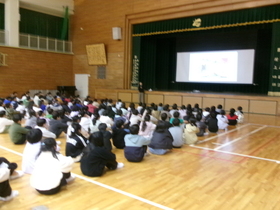 毎月1日はいのちと人権の日です。月初めに全校で集会を開き、命と人権について考える機会としています。