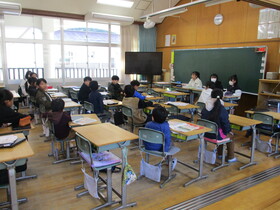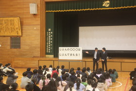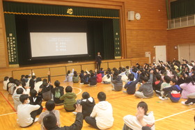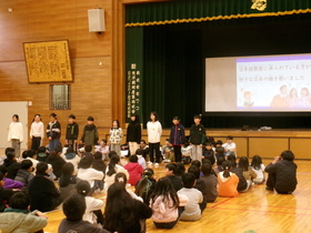 11月に5年生が国際交流を行いましたが、そこで学んだことを全校生に向けて、プレゼンを行いました。しっかりと聞こえる声で、見せ方も工夫したプレゼンでした。他学年からたくさんの感想が出ました。